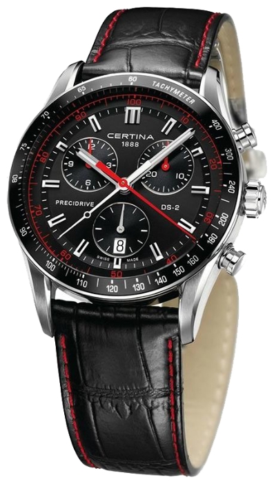 - Модель «Certina DS-2 Chronograph» C024.447.16.051.03 с чёрным циферблатом, красными стрелками 1/100-секундного, 30-минутного и 12-часового счётчиков, белой стрелкой 60-секундного счётчика и красной 1/100 секундной шкалой.