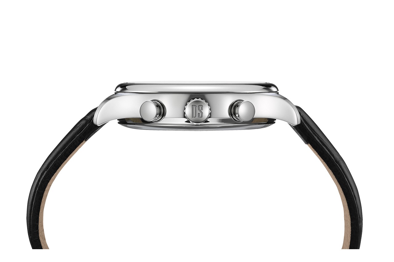 Новая модель DS-8 Chronograph Moon Phase оснащена усовершенствованным кварцевым часовым механизмом PrecidriveTM, хронометрическая точность хода которого подтверждена независимым швейцарским агентством COSC. Механизм надежно защищен системой двойной надежности DS, которая включает сапфировое стекло с антибликовым покрытием и устойчива к появлению царапин.