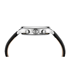 Круглый корпус из нержавеющей стали диаметром 42 мм задает стильный акцент благодаря сочетанию сатинированных и полированных поверхностей. Элегантность и ясность исполнения подчеркивает темно-синий циферблат с гильоше «Солнечные лучи». Также доступны варианты исполнения циферблата в темно-коричневом, черном или серебристом цветах. Дополнительное покрытие Super-LumiNova® на элегантных арабских цифрах и часовых отметках, а также на часовой и минутной стрелках улучшают считываемость показаний даже в темноте. Внешний вид модели дополняет ремешок из телячьей кожи с тиснением под крокодиловую кожу. Также доступны темно-коричневый кожаный ремешок или удобный стальной браслет из пяти рядов звеньев.