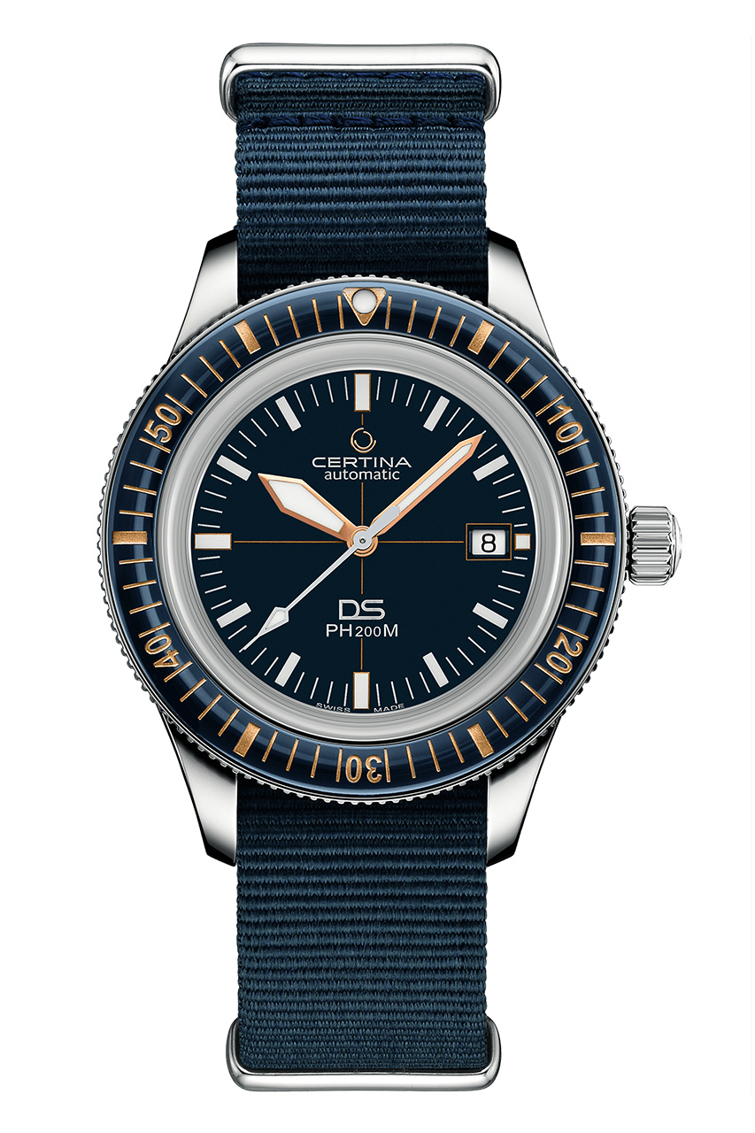Модель DS PH200M в корпусе из нержавеющей стали диаметром 42,8 мм оснащена выпуклым вращающимся безелем из темно-синей керамики со шкалой золотого цвета. Элементы с покрытием Super-LumiNova® на темно-синем циферблате, стрелках и безеле позволяют считывать показания даже в условиях слабой освещенности. Часы дополнены серо-синим ремешком NATO. Альтернативные варианты исполнения имеют черный безель, корпус с черным PVD-покрытием, коричневый ремешок из телячьей кожи или браслет с миланским плетением. Система быстрой замены позволяет легко менять ремешки.