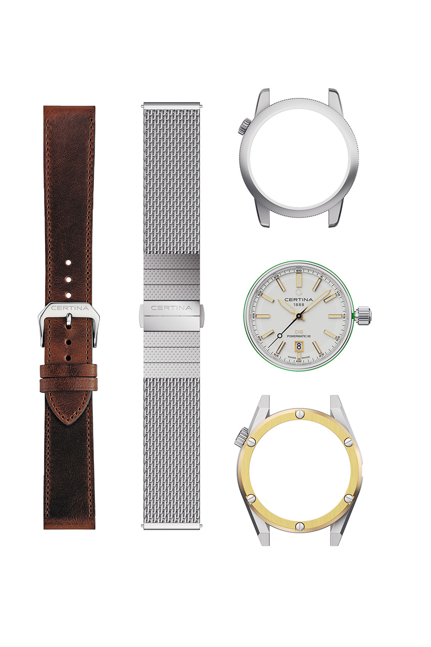 Модель DS+ представляет новую концепцию от Certina: часы с возможностью выбора не только ремешка, но и формы корпуса для создания кастомизированного аксессуара. Выберите спортивный или винтажный образ, стиль для города или отпуска. Благодаря уникальной трехмодульной конструкции вы можете легко изменить дизайн часов – без использования инструментов и всего за несколько шагов – чтобы соответствовать выбранному образу. При этом надежность, прочность конструкции и точность автоматического калибра Powermatic 80 с пружиной баланса Nivachron™ остаются неизменными. Certina продолжает переносить динамично меняющийся стиль на ваше запястье, создавая модели, которые во всех отношениях представляют собой больше, чем просто часы.