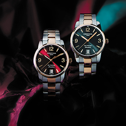 Теперь коллекцию элегантных женских часов дополняют четыре новые модели. Корпус и безель часов с эффектным циферблатом вишнево-красного, глубокого изумрудного и классического черного цветов дополнены акцентами с напылением из розового золота и покрытием PVD. В браслете и корпусе использовано сочетание двух оттенков металла. Особенно ярко в линейке выделяется модель с перламутровым циферблатом черного мерцающего цвета, который придает часам роскошь и делает их настоящим ювелирным украшением. Эти часы имеют корпус с напылением из розового золота и покрытием PVD, а в качестве крепления использован кожаный ремешок.