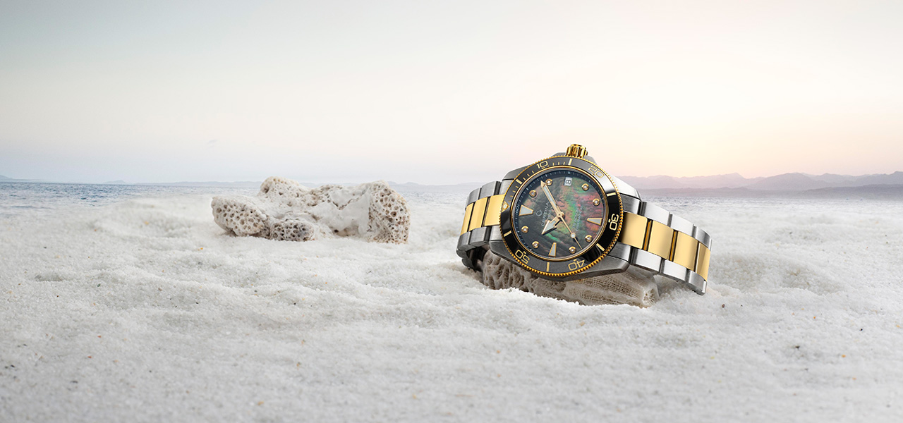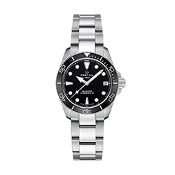 Круглый корпус из нержавеющей стали с однонаправленно вращающимся безелем с керамическими вставками подчеркивает динамичный характер модели. Лаконичный циферблат с покрытием Super-LumiNova® на стрелках и индексах выполнен в современном дизайне. Суперэлегантная двухцветная версия представлена в черном или белом перламутре, дополненном сияющими бриллиантовыми индексами и акцентными деталями цвета желтого золота. Также доступны модели с белым, синим или черным лакированным циферблатом в корпусе из нержавеющей стали.