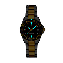 - Стрелки и индексы с покрытием Super-LumiNova® цвета желтого золота.