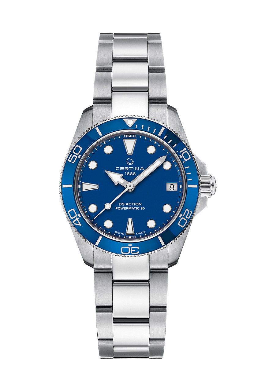 Наша голубая планета получила такое название благодаря бескрайнему мировому океану. Именно он заложил начало жизни на Земле, ему посвящено огромное количество легенд, и множество людей стремятся к нему всю свою жизнь. Швейцарская часовая марка Certina также нередко черпает вдохновение в морской стихии. Ее новые часы DS Action 34,5 мм выполнены в ярко выраженном морском стиле, который сочетается с земной точностью и надежностью. Эти современные наручные часы впечатляют игрой контрастов: изящный внешний вид сочетается со спортивной динамичностью, сатинированная сталь – с блестящими акцентными деталями, а современный дизайн – с традиционным механическим калибром.