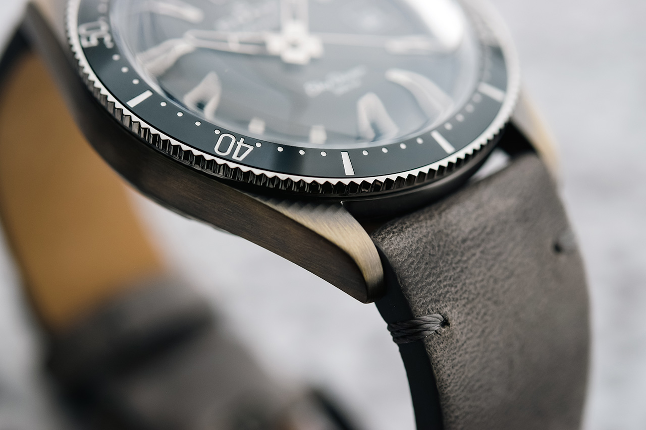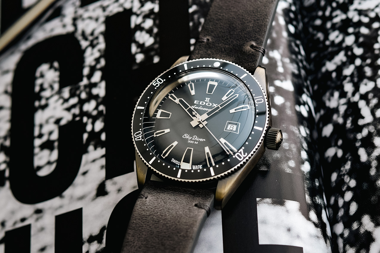Еще одним «винтажным» штрихом является специальное покрытие, нанесенное на ремешок из серой кожи. Покрытие создает «складки» на ремешке – еще один ностальгический штрих. SkyDiver Date Automatic также поставляется с альтернативным ремешком из коричневой кожи, который можно легко заменить. Под капотом находится механизм с автоподзаводом Edox Calibre 80, изготовленный швейцарским специалистом Sellita, а внешний керамический безель, устойчивый к царапинам, обеспечивает практичный инструмент для расчета времени погружения на глубину до 300 метров ниже уровня моря.
