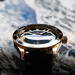Часы SkyDiver XXI века теперь являются основой семейства часов Edox и сочетают лучшее из обоих миров – классический дизайн с совершенно современным оттенком. Теперь Edox представляет новый SkyDiver с уникальной «изюминкой» – бронзовый корпус с розовым покрытием Bronze Date Automatic. Розовые оттенки бронзового корпуса прекрасно дополняются элегантным шиферно-серо-голубым циферблатом. Часы SkyDiver Bronze Date Automatic излучают классическую атмосферу винтажных часов, но при этом они по-прежнему прочны – прямо как суровый, оригинальный парашютист в военной тематике. Большие индексы и стрелки с покрытием Super-LumiNova напоминают простые для чтения циферблаты военных часов, а внешний керамический безель, устойчивый к царапинам, также является практичным инструментом для дайверов с давлением до 30 АТМ.