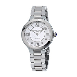 1. Frederique Constant Classics Delight Automatic FC-306WHD3ER6B Корпус из полированной нержавеющей стали. Циферблат с отделкой серебристым перламутром по цифровому полю и белым узором гильоше по центру. Центральные стрелки и римские цифры из полированной нержавеющей стали, восемь бриллиантов в виде условных индексов, прямоугольное окошко даты. 3-рядный браслет из нержавеющей стали. Раскладывающаяся стальная застёжка. |