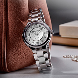 3. Frederique Constant Classics Delight Automatic FC-306MC3ER6B Корпус из полированной нержавеющей стали. Циферблат с отделкой серебристым перламутром по цифровому полю и серебристым узором гильоше по центру. Воронёные центральные стрелки и чёрные печатные римские цифры, прямоугольное окошко даты. 3-рядный браслет из нержавеющей стали. Раскладывающаяся стальная застёжка. |