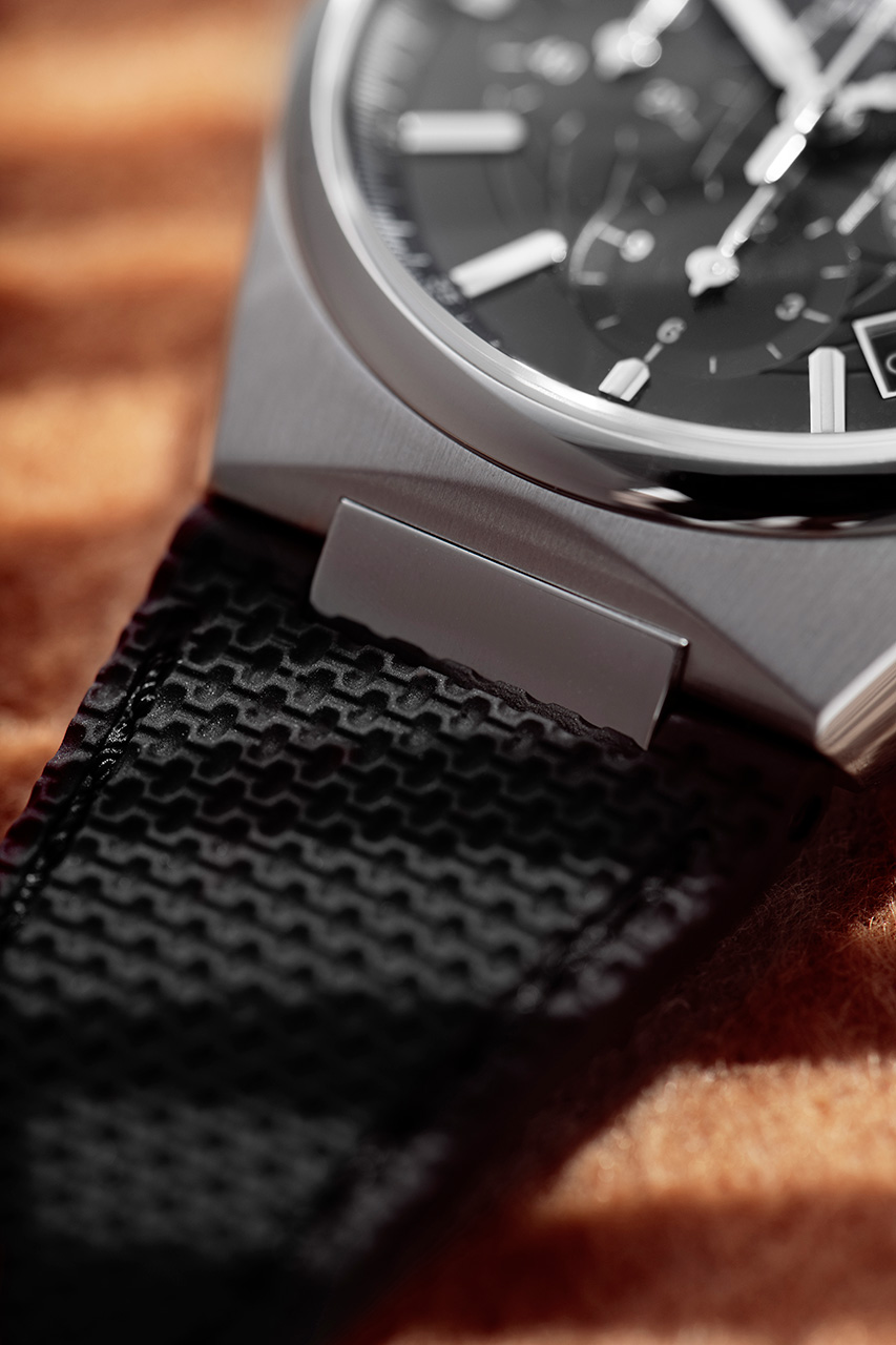 Дизайн третьей модели строится на контрастах: ее корпус и браслет из стали явно перекликаются с черным циферблатом с его стальными часовыми индексами и стрелками. Второй ремешок из каучука идеально дополнит спортивный и более сдержанный облик этой версии.
