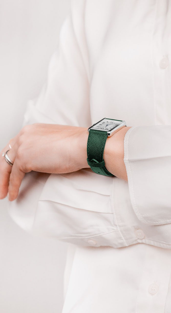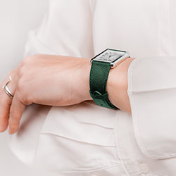 HIRSCH Giffone Limited Edition — ремешок, в котором современный дизайн соединяется с традиционным ремеслом. Новая версия представлена в насыщенном зелёном цвете, который подчёркивает винтажную эстетику и отлично подходит для классических и ретро-часов.