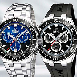 - Jaguar J1022 — пять моделей на браслете из сатинированной стали с керамическим безелем в цвет циферблата, включая вариации "Панда" и насыщенный зелёный.