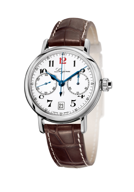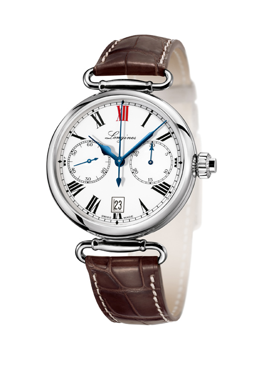 Модель однокнопочного хронографа «The Longines Column-Wheel Single Push-Piece Chronograph», копия оригинала 1913 года, в корпусе из нержавеющей стали диаметром 40 мм с подвижными ушками. Часы оснащены эксклюзивным автоматическим механизмом калибра «L788» компании «ETA». Белый циферблат, чёрные римские цифры, красная цифра «XII», воронёные фигурные стрелки, 30-минутный и 60-секундный счётчики хронографа, окошечко даты. Ремешок из натуральной кожи коричневого цвета.