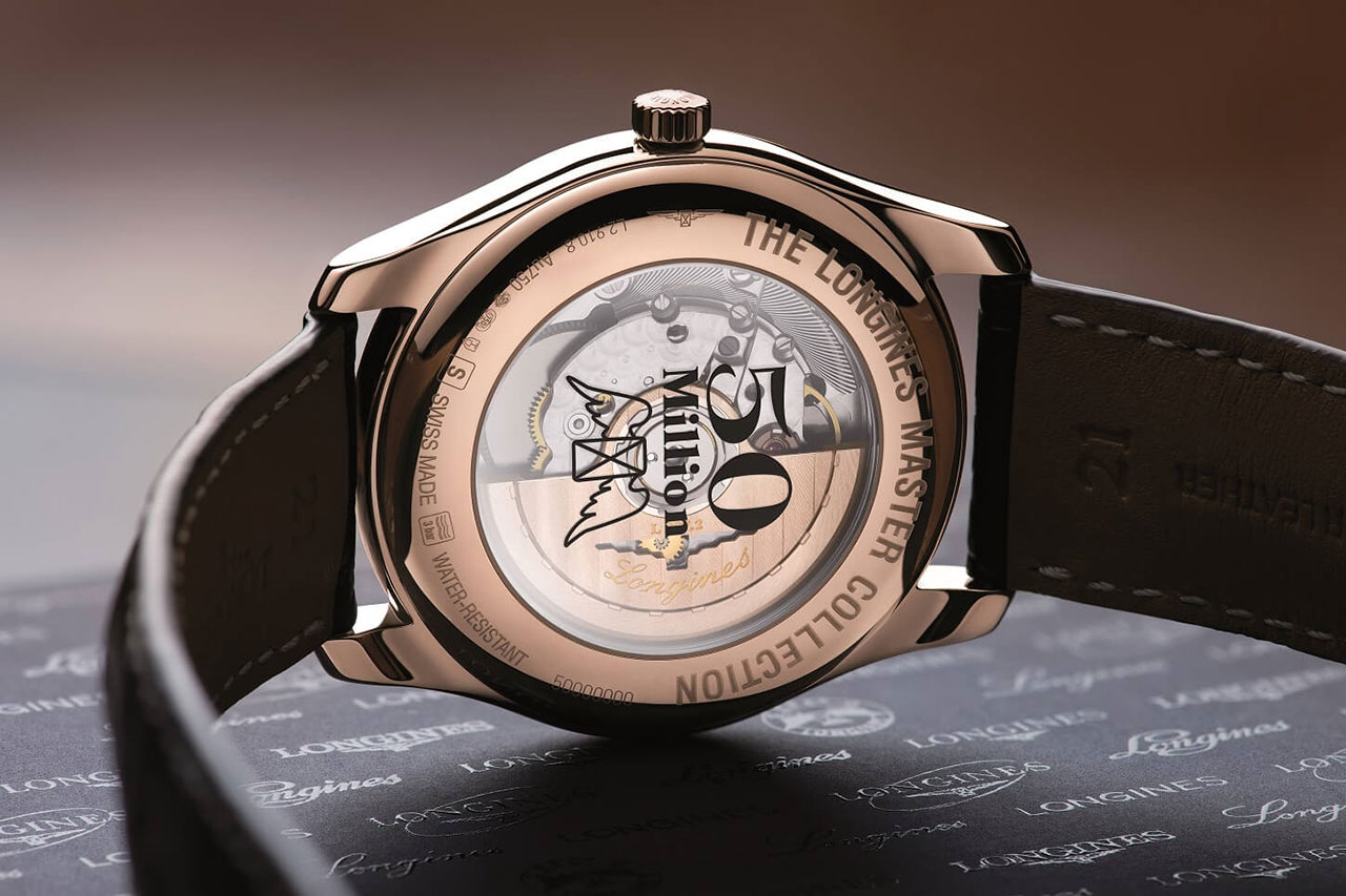Возможность отслеживать происхождение часов не только упрощает проверку подлинности изделий Longines, но и позволяет следить за развитием производства. Так, важной исторической вехой в истории бренда стал выпуск более 50 миллионов изделий. В честь знаменательного события компания создала уникальную модель часов с серийным номером 50 000 000. Часы из коллекции The Longines Master Collection стали символом богатого наследия марки. Сочетая в себе классическую элегантность и техническое совершенство, эта новинка с корпусом из розового золота диаметром 40 мм оснащена новым эксклюзивным механизмом калибра L897 с автоподзаводом. Он обладает 64-часовым запасом хода и годовым календарем в положении «3 часа». Cтрелки из воронёной стали показывают часы, минуты, секунды и выделяются на серебристом циферблате, украшенном узором «ячменное зерно». Прозрачная задняя крышка декорирована памятной надписью, через которую можно наблюдать за работой механизма.