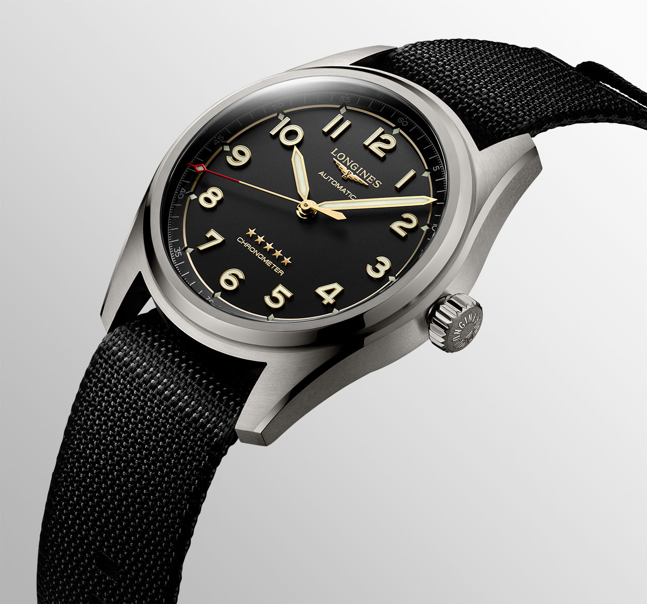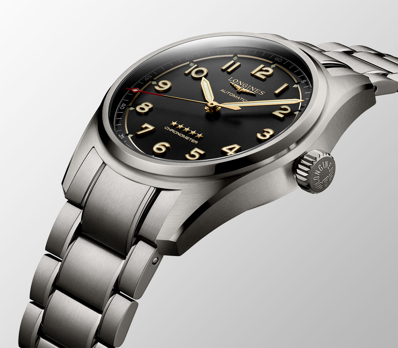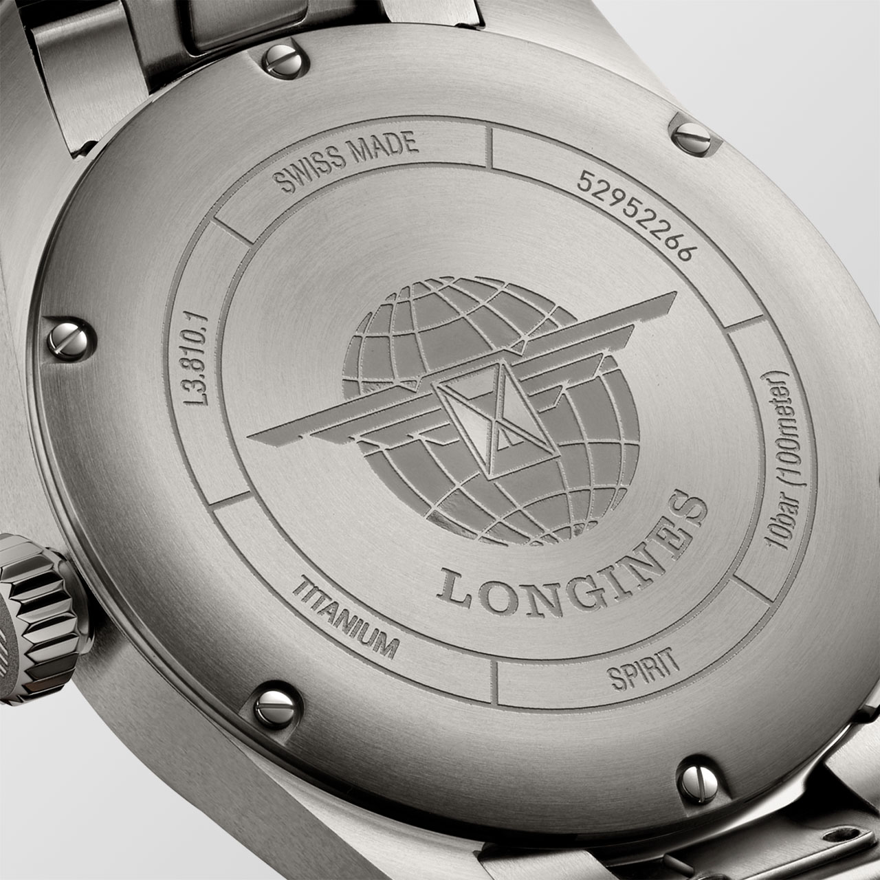 В истории Longines Spirit начинается новая эпоха — эпоха титана. Более прочный и легкий, чем нержавеющая сталь, сплав Grade 5 (титан, алюминий, ванадий) — прекрасный пример того, что прочность не всегда сопровождается большим весом. Кроме того, этот металл отличается от нержавеющей стали более темной и матовой поверхностью, что придает часам современный вид.