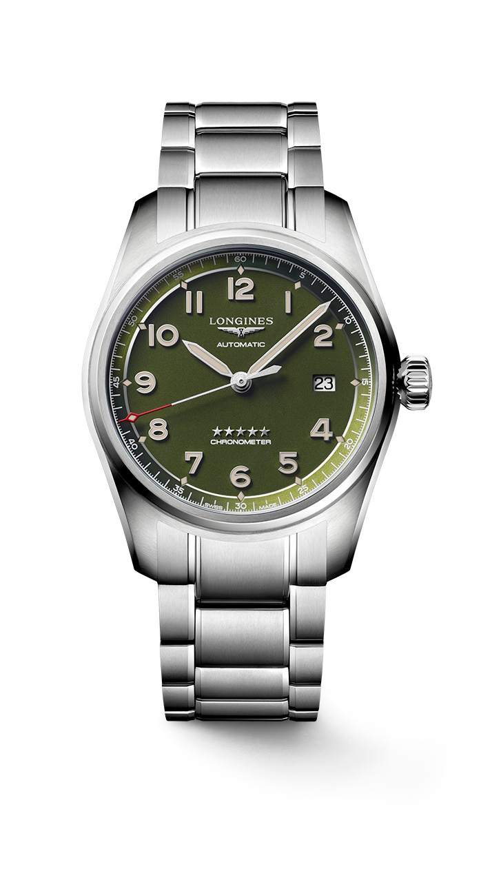 Стилистика Longines Spirits созвучна точным инструментам, сыгравшим важную роль в покорении воздуха, суши и моря. Легендарная коллекция пополнилась новинкой с зеленым циферблатом. Сочетая историю с инновациями, эта коллекция комбинирует в себе винтажную эстетику первых шагов в авиации с актуальными техническими достижениями. Несомненно, современная по своему характеру, она воплощает наследие Longines и отдает дань уважению мужеству, подвигам и невероятной храбрости великих первооткрывателей прошлого.