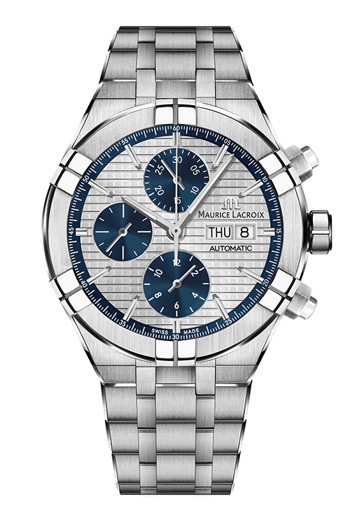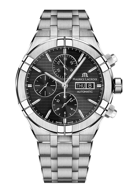 Часам AIKON Automatic трудно остаться незамеченными – каждый элемент от корпуса до браслета привлекает внимание. Благодаря динамичной игре света на гранях, контрасту полированных и сатинированных поверхностей новые модели притягивают взгляды. Все грани матового стального корпуса и шесть выступов безеля, ставшие визитной карточкой коллекции AIKON, идеально отполированы. В хронографе контраст текстур использован в отделке заводной головки и кнопок шестиугольной формы с отточенными гранями. В каждом изгибе этих часов ощущаются сила и энергия, которые определяют ярко выраженный мужской характер и авангардный дизайн – фирменный прием Maurice Lacroix. Часы крепятся на стальной браслет новой конструкции со звеньями в пять рядов. За счет своей гибкости и мягкости он идеально облегает любое запястье.