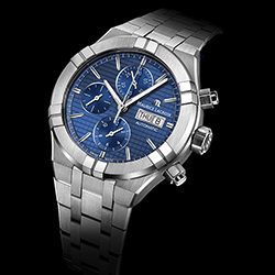 Яркий дизайн модели AIKON Automatic Chronograph заслуживает отдельного внимания. В корпус диаметром 44 мм установлен механизм хронографа с автоподзаводом. Уровень водонепроницаемости составляет 200 метров за счет использования завинчивающихся заводной головки, задней крышки и кнопок. На этапе запуска линии AIKON Automatic компания представляет пять версий хронографов с циферблатами трех цветов: синим, серебристым и черным. Версия с серебристым циферблатом в актуальном стиле «панда» дополнена контрастными счетчиками синего цвета.