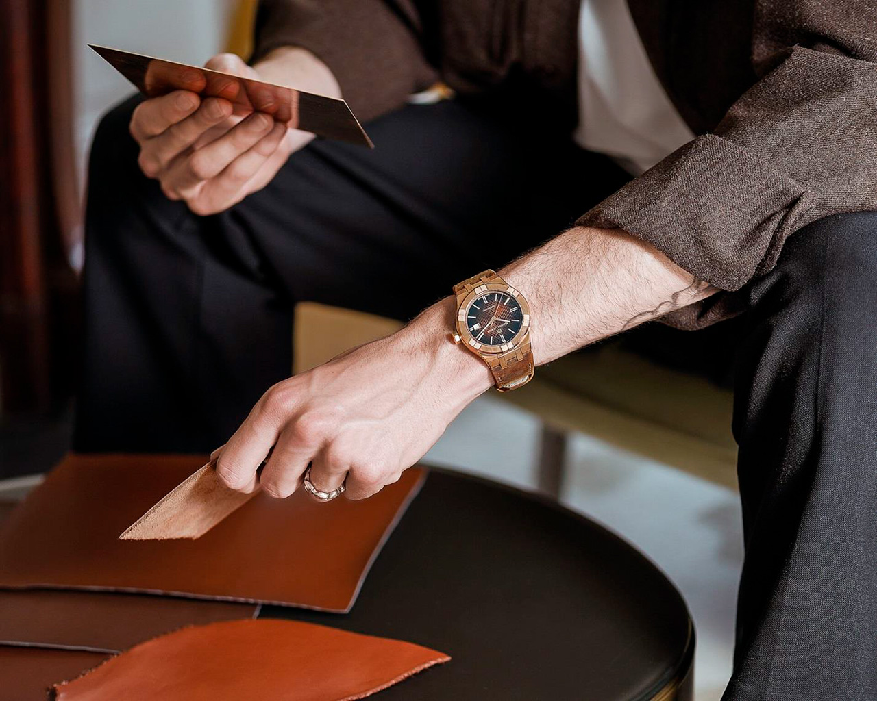 Циферблат: коричневый циферблат «Clous-de-Paris» с датой в положении «3 часа»