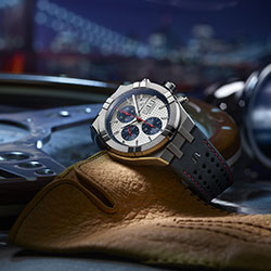 Спустя год после выпуска коллекции AIKON Automatic Chronograph ее ассортимент пополнился моделью, выпущенной ограниченной серией из 500 экземпляров. Эффектное сочетание – серебристый циферблат, синие счетчики и красные стрелки – вносят в коллекцию яркий цветовой акцент.