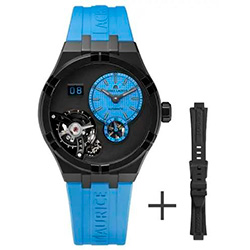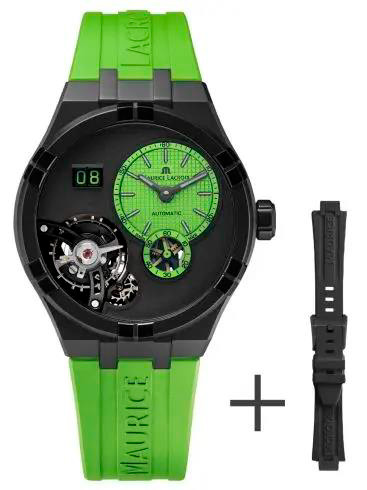 Как и в случае с другими элементами коллекции AIKON, в чехле отсутствуют обычные выступы и ремешок встроен в корпус, что повышает комфорт пользователя. Часы поставляются с двумя резиновыми ремешками: один подходит к циферблату, а другой представлен в черном цвете в дополнение к корпусу. На обоих ремешках рельефно выгравировано Maurice Lacroix, что придает модели современный вид.