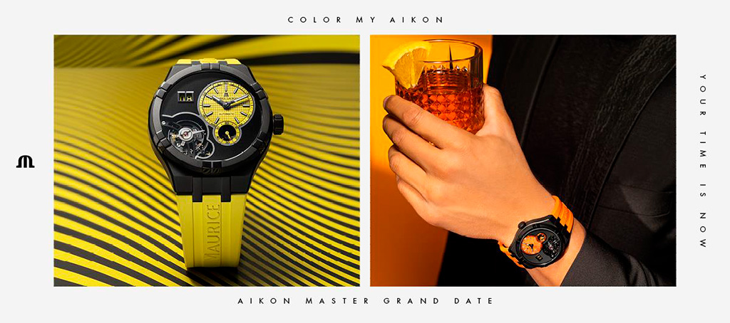 Maurice Lacroix по-новому интерпретирует внешний вид своего AIKON Master Grand Date Black, используя яркие солнечные оттенки. В результате получились часы AIKON Master Grand Date Technicolour, сочетающие серьезное часовое искусство с игривым использованием цвета.