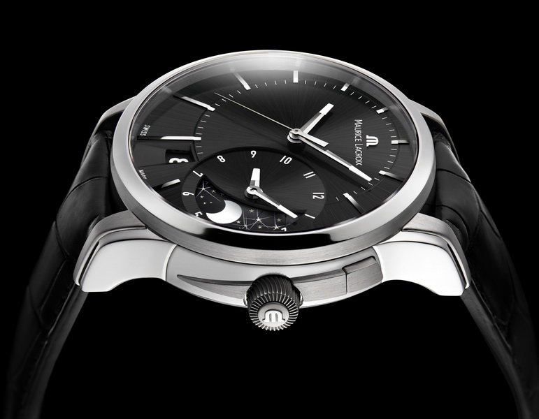 Часы "Pontos Decentrique GMT Maurice Lacroix также предлагаются в версии с отделкой "солнечные лучи" чёрного или родиевого цвета и с накладными метками, прошедшими алмазную обработку.