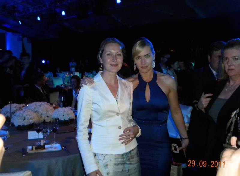 Еще одно наблюдение, которое я вынесла из поездки - европейские товары стоят крайне дорого. Китайское налогообложение на ввозимый товар еще жестче, чем российское. Разница между европейскими ценами порядка 50 процентов. Потому вполне оправдана жадность китайцев на шопинге в Европе. В каждую страну они едут за определенными вещами, в Швейцарию конечно же за часами. Это обычно последняя точка в их шопинг-маршруте. И когда в бутик заходит команда китайцев - а часто они ездят именно группами - швейцарцы даже закрывают часовой бутик, чтобы их обслужить. В Шанхае организаторы устроили для нас и китайских дилеров шикарный гала-ужин со звездой. С этого года лицом Longines стала Кейт Уинслет, так полюбившаяся всем после "Титаника". И она, как посланник бренда, специально прилетела на данное мероприятие. В зале были не только часовщики, но и китайская знать. А я не упустила возможность сделать фото со звездой, тем более что Кейт была вполне открыта к общению.