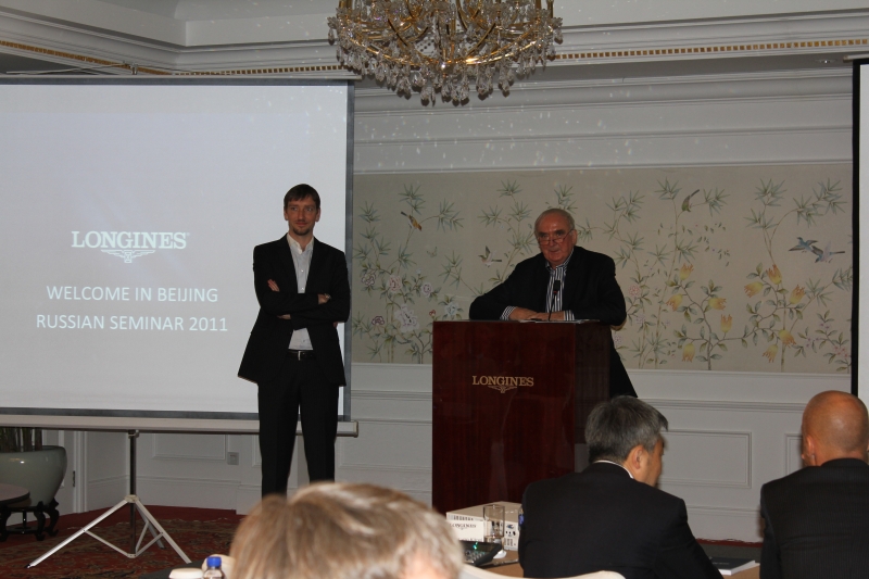 Один день нашего визита был посвящен конференции. Ее вел сам президент Longines Вальтер фон Кэнел. Он начал с того, что рассказал о том, как в начале каждого года озвучивает перед своими коллегами девиз, под которым им предстоит этот год прожить. Девиз '2011 - "Full Speed Ahead!" (или "Полный вперед!"). Но мне лично запомнился другой: "Проводи свое время в полях и не будь рабом е-мейла".