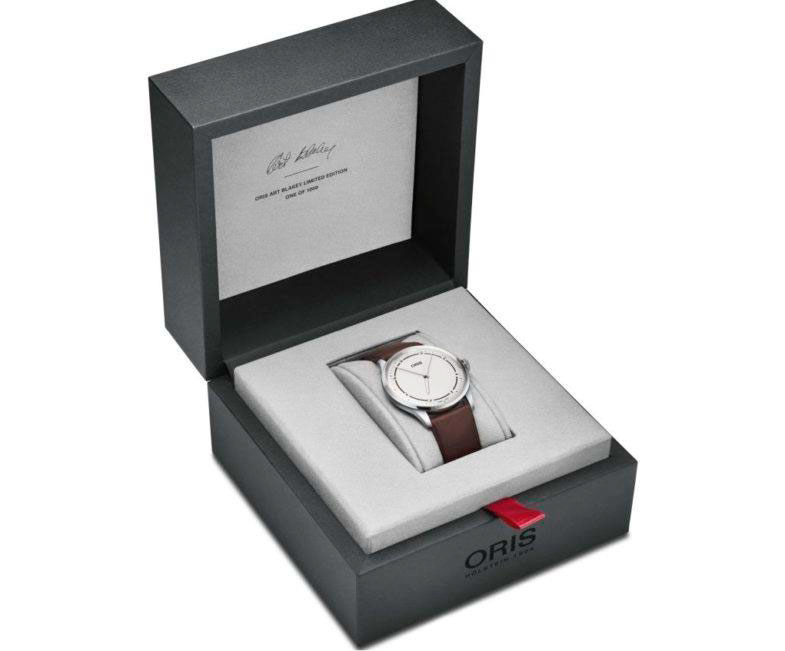 Oris Art Blakey Limited Edition поставляются в специальной коробочке на коричневом кожаном ремешке с фирменной клипсой-застежкой. Всего выпущено 1000 экземпляров часов.
