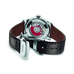 Часы «Oris Artelier Jumping Hour» комплектуются тёмно-коричневым ремешком из телячьей кожи с крокодиловым тиснением, снабжённым стальной раскладывающейся застёжкой. Новые часы, безусловно, обратят на себя внимание со стороны тех, кто отдаёт предпочтение сдержанному классическому дизайну и неравнодушен к функциональной оригинальности.