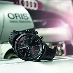 Имя «Oris» уже давно творчески связано с такими разными видами деятельности как джаз, подводное плавание, авиация, а также с рядом других технических видов спорта. Связь с автоспортом и традиция производства многофункциональных автогоночных часов прослеживается у Oris с 1970-х годов. Именно тогда был выпущен первый подобного рода хронограф «Chronoris». Участие Oris в мире автоспорта стало более активным после подписания договора о сотрудничестве с гоночной командой «Williams F1» в 2003 году. В 2014 году, компания «Oris» подписала трёхлетний контракт о сотрудничестве с именитой гоночной командой «Audi Sport» и теперь Oris имеет возможность способствовать впечатляющим успехам Audi в крайне жёстком и требовательном мире автогонок.