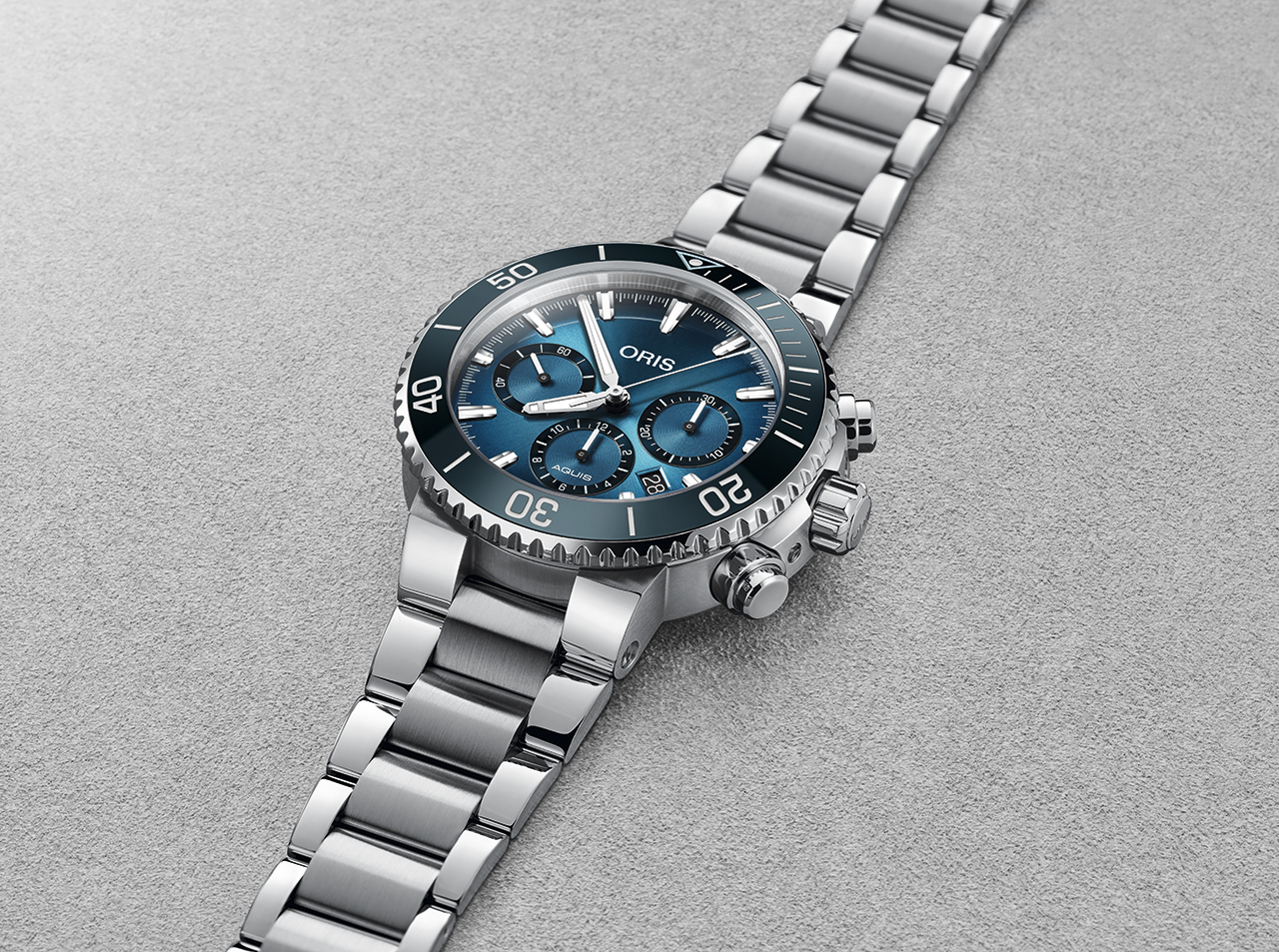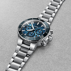 Модель Oris Blue Whale Limited Edition является первым хронографом Aquis с расположением циферблатов на делениях 3, 6 и 9 часов. Новые часы завершают комплект Oris Ocean Trilogy, часть проекта «Океаны» компании Oris.