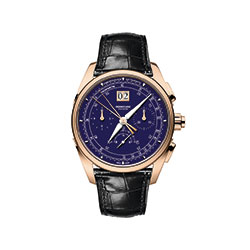 Интегрировать крупный указатель даты в калибр со встроенным хронографом – задача не из легких, учитывая существующие пространственные ограничения. Конструкторам удалось максимально увеличить полезную площадь поверхности часов, что позволило идеально разместить внутри даже диски диаметром 13 мм. В двойном окошке с накладными отметками из золота у отметки «12 часов» отображается дата.
