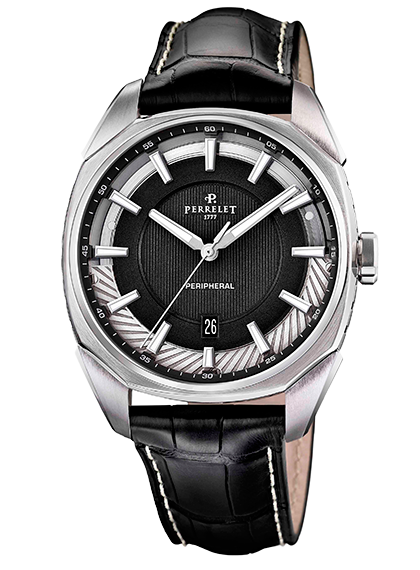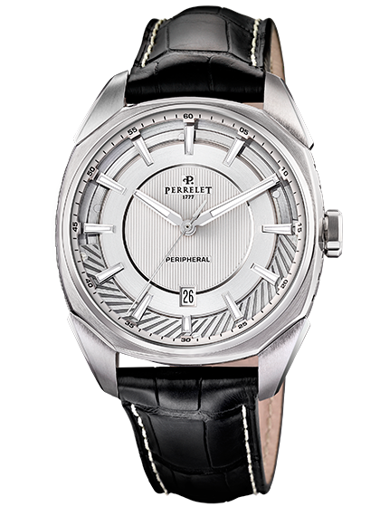 1. Perrelet LAB A 1100/1: стальной корпус, серебристый циферблат, чёрный кожаный ремешок. | |