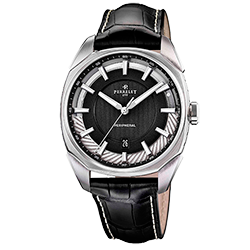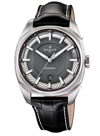 2. Perrelet LAB A 1100/2: стальной корпус, антрацитовый циферблат, чёрный кожаный ремешок. | |