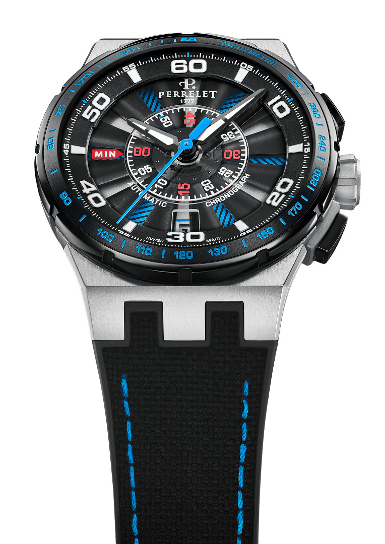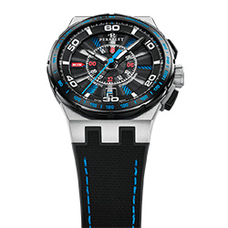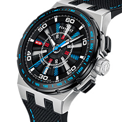 Хронограф модели Turbine Chrono обладает уникальным дифференциальным дисплеем, который гармонично дополняется характерным для данной модели дизайном. Вместо привычных часовых субциферблатов, у хронографа Turbine есть единственный центральный счетчик в виде вращающегося сапфирового стеклянного диска для отслеживания минут. Все это помещено в корпус из матового титана, что придает часам невероятную легкость и прочность.