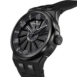 Турбина на циферблате, вдохновленная авиационными установками, представляет собой 12 лопастей из черного анодированного алюминия, движущихся при малейшем движении запястья. Это не только визуальный акцент, но и эстетическая деталь, добавляющая динамики образу ее владельца. Корпус выполнен из легкого титана, прочного, устойчивого к коррозии и гипоаллергенного. Модели также представлены с DLC-покрытием, которое увеличивает стойкость к царапинам, придавая часам долговечность в носке и современный вид.
