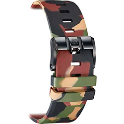 Циферблат украшен военным камуфляжем в светло-зеленых, оливково-зеленых, бежевых и коричневых тонах.