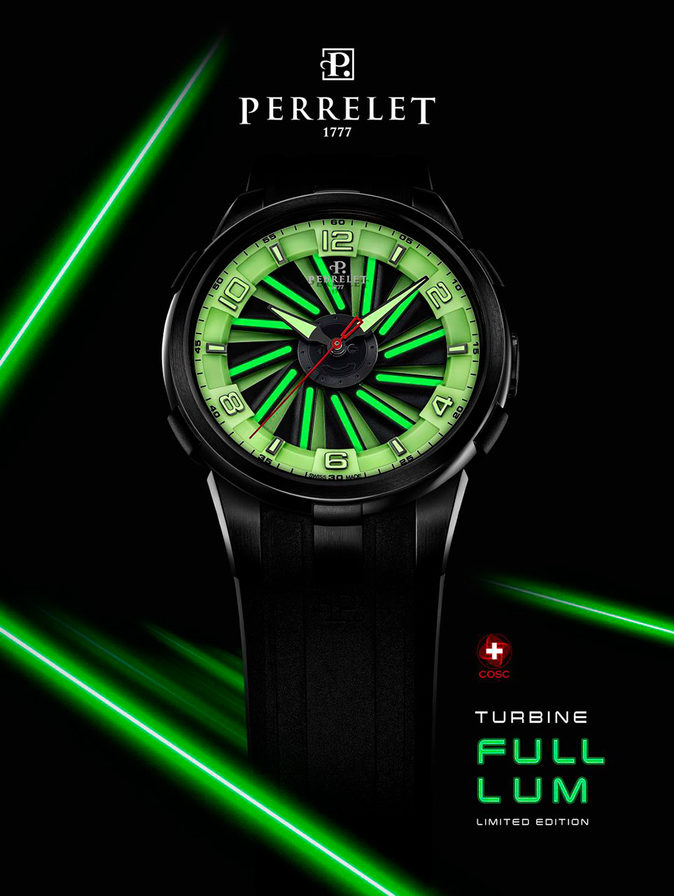 Компания Perrelet расширяет свою самую культовую коллекцию новой моделью Turbine Full Lum. Это лимитированная серия из 50 экземпляров с циферблатом, полностью обогащенным люминесцентными пигментами.