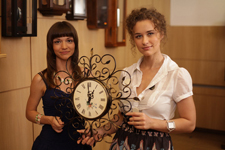 С чувственностью и роскошью Ольга Одинцова на "ты". Поэтому она мгновенно вжилась в образ "а ля белый лебедь" ... романтичной девушки, живущей сердцем. Ольгу даже уговаривать не пришлось на девичий блеск в глазах и невинную улыбку ... все получилось само собой. Казалось, еще чуть-чуть.. и около витрины появится прекрасный юноша, и галантно протянув руку, пригласит героиню на пируэт. А пока... пока она в ожидании его прихода посматривает на бронзовый циферблат К. Mozer.