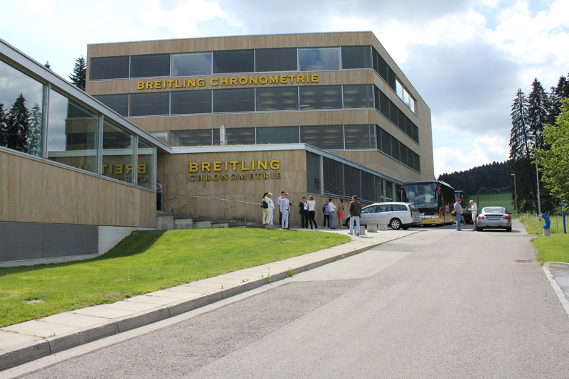 После авиашоу - конечно, не в тот же день, чтобы не смешивать впечатления - мы посетили фабрику Breitling в Ля Шо-де-Фон и штаб-квартиру Breitling в Гренхене. Всех потрясли виды из окон переговорных и производственных помещений фабрики. Знаете, в рекламах часто красиво рассказывают о том, как «тихими долгими вечерами швейцарцы в горах собирают часы» - так вот, за исключением долгих вечеров, это правда. За окнами переговорной комнаты виднелись склоны гор, альпийские луга с нежно-зеленой травой, которую мирно щипали породистые швейцарские буренки. Мы перешли в цех - и что же, в окне, разумеется, виднелись те же луга и коровы. Вид - как будто ты находишься в отеле среди гор, а вовсе не на работе - если бы не специалисты в белых халатах. Поскольку производство часов предполагает идеальную чистоту и отсутствие пыли, то каждый час в помещениях полностью меняется воздух - на свежий и чистый.