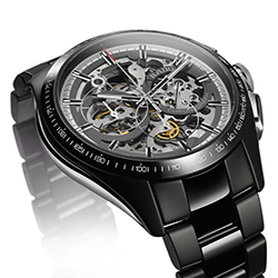 Дизайн часов позволяет их обладателю выглядеть стильным в любой обстановке независимо от того, где он находится – в спортзале, офисе или на отдыхе. Хронограф HyperChrome Skeleton из черной высокотехнологичной керамики одновременно спортивный и элегантный. Керамические детали изготовлены при температуре 1450° C. Черное матовое покрытие сверхтвердых керамических деталей достигается в результате их интенсивной пескоструйной обработки и окончательной полировки.