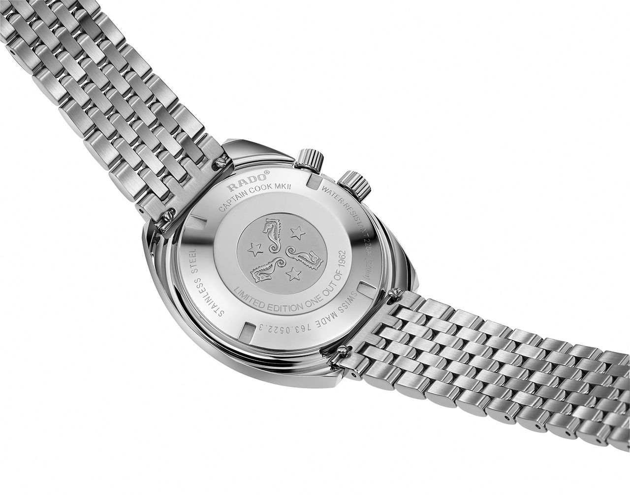 На первый взгляд современные часы Captain Cook MKII от Rado полностью похожи на оригинальную модель 1962 года. Они имеют внутренний вращающийся безель красного и белого цвета с точками с покрытием Super-LumiNova®. Однако при более внимательном осмотре можно заметить матовый циферблат черного цвета и тончайшие узоры цвета родия — детали, которые присущи исключительно часам Captain Cook MKII XXI века.