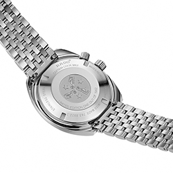 - Задняя крышка из полированной нержавеющей стали с изображением двух морских коньков.