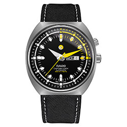 Часы Rado Tradition Captain Cook MKIII в винтажном стиле оснащены спортивным тканевым ремешком. В то же время модель имеет множество других авангардных деталей. Выпуклое сапфировое стекло покрывает циферблат с окошком даты. Механизм обладает запасом хода до 80 часов, а водонепроницаемость достигает до 22 бар (220 м).