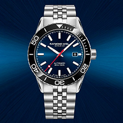 Эти часы, выполненные в стиле американского флага, доступны с каучуковым ремешком с перфорацией или браслетом из пяти рядов. Синий циферблат с солнечными лучами и красная секундная стрелка символизируют ценности свободы и независимости, которые разделяют RAYMOND WEIL и флаг Old Glory.