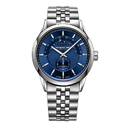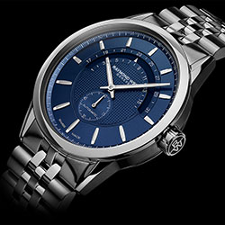 Новинки представлены в двух вариантах. Первый – в исполнении из полированной нержавеющей стали с синим циферблатом и серебристыми индексами. Второй – двухцветный с черными циферблатом, индексами и стрелками цвета желтого золота с белым люминесцентным покрытием Super-Luminova®. Новые модели привносят во флагманскую линейку RAYMOND WEIL freelancer современную урбанистическую тональность.