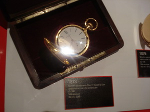 В Музее часов компании Tissot находятся первые в мире автоматические часы, и антимагнитные, и в корпусах из гранита, дерева и перламутра, и замечательный экземпляр механических часов 1975 года IDEA 2001, где все детали изготовлены из пластика, и часы с двойной индикацией, и кварцевые с автоподзаводом.