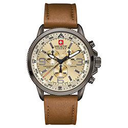 - Swiss Military Hanowa Arrow Chrono 06-4224.30.002: корпус с ионным напылением цвета оружейной стали, светло-коричневый циферблат и светло-коричневый ремешок.